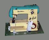 使用特殊轻合金实现机身轻量化。可 通过调节刻度盘进行缎纹(密针)线 迹及刺绣线迹缝纫的家用电动多功能 缝纫机,是1960年代的畅销产品。